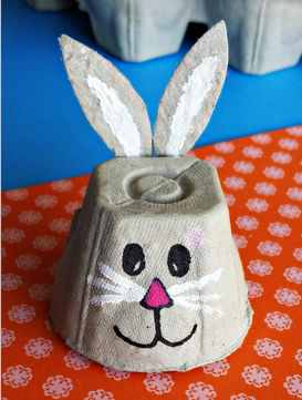 Puteţi face o familie întreagă de iepuraşi dintr-un carton de oua reciclat sau le puteţi transforma în coşuleţe de Paşte.