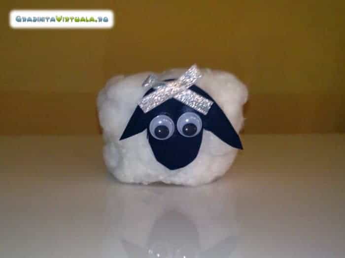 O activitate simpla si foarte placuta ce se poate face cu ce aveti prin casa: un tub de hartie, vata, un carton negru, ochi pe care ii puteti realiza dintr-o hartie alba decupata, peste care puteti desena o pupila neagra.