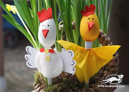 Ai nevoie de: oua de polistiren mai mari, acuarele, carton, ochisori adezivi, pompoane, lipici, foarfeca si chiar si de bete pentru frigarui.