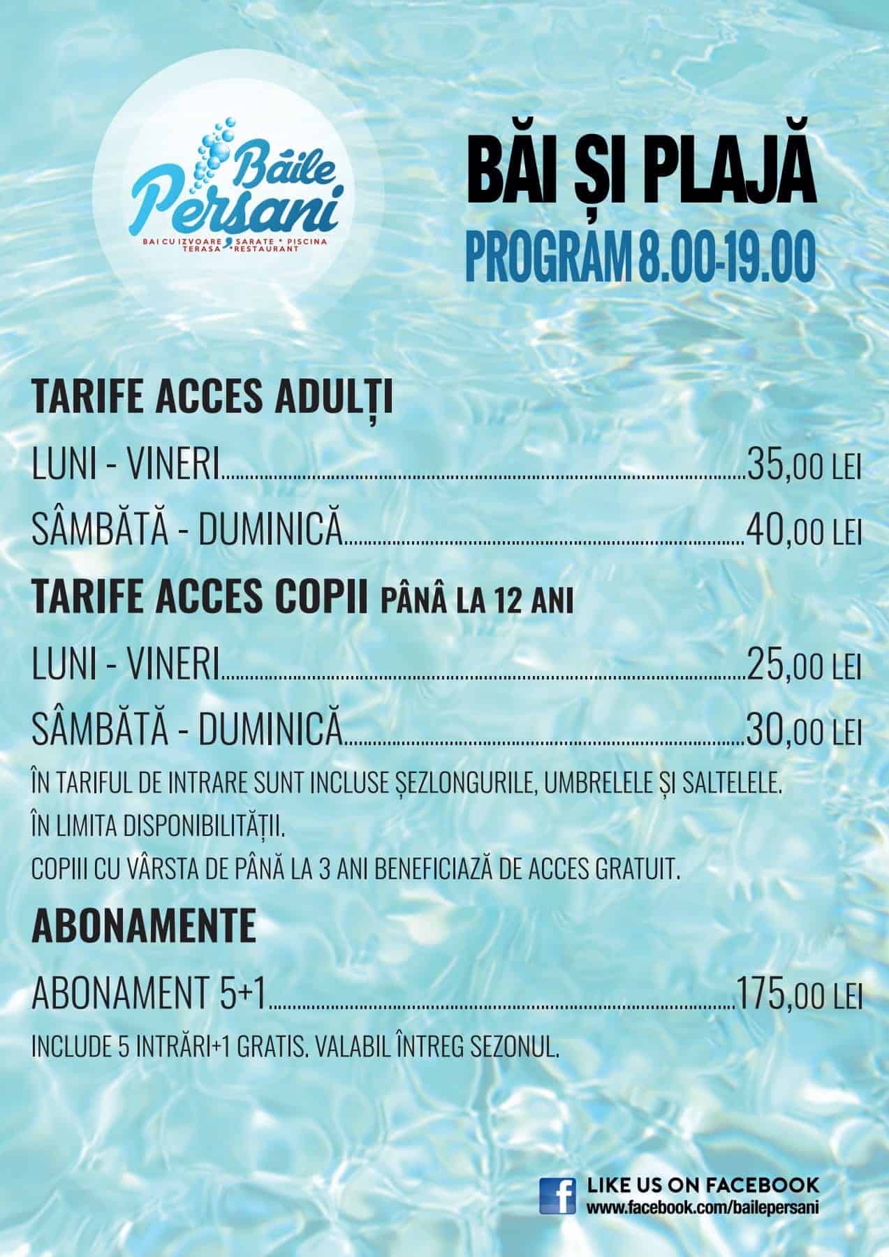 - Copii (4-12 ani): 40 RON – Prosop și acces la piscină