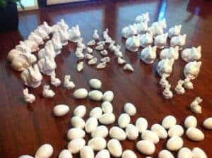 activitati copii pasteAvem oua, iepurasi si pasarele  din polistiren.