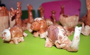 - Materiale folosite: acuarele, tempera, pensule, bureti, stampile, lut, angobe, instrumente modelaj, lipiciuri, elemente de colaj, cartoane si foi colorate, hartie creponata, ate, materiale textile.