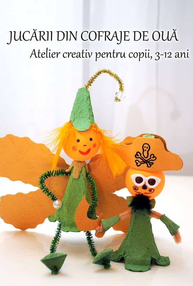 Atelier creativ „Jucării din cofraje de ouă”, recomandat copiilor cu vârste între 3-12 ani.