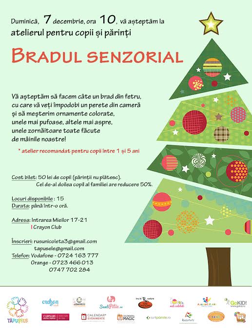 Atelier pentru parinti si copii cu Tapusele – Bradul senzorial, recomandat copiilor cu vârsta între 1-5 ani.