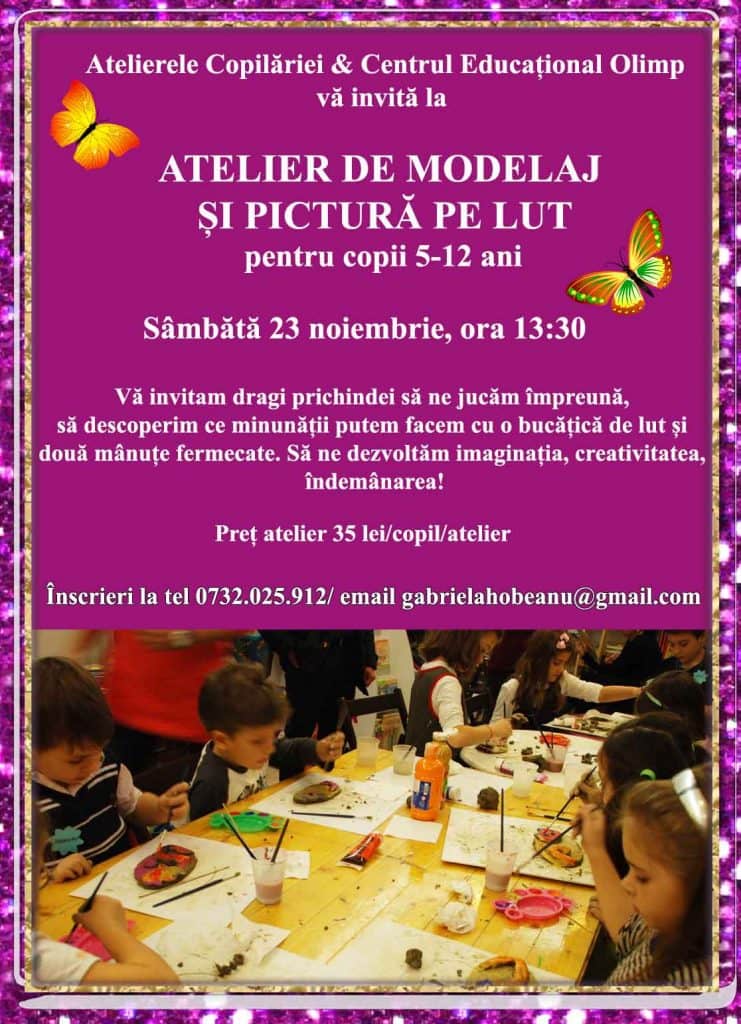 Atelierele Copilariei si Centrul Educational Olimp va invita la atelierul de modelaj si pictura pe lut, pentru copii de 5-12 ani.