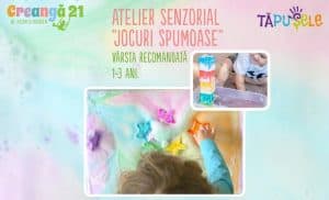 Tapusele va invita la ateliere senzoriale copii 1-3 ani, unde se pot juca cu spuma, modeleaza, coloreaza si fac baloane.