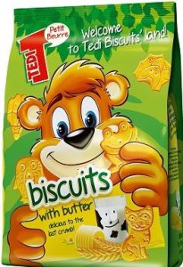 Alături de sucul Tedi, părinţii au acum ocazia să ofere celor mici gustarea sau desertul potrivit. Biscuiţii Tedi pot fi serviţi la micul dejun sau îi pot însoţi pe elevi la şcoală. Pentru că viaţa lor este o continuă joacă, am ales ca biscuiţii de tip petit beurre să fie în formă de animăluţe, astfel încât să creăm copiilor încă o ocazie pentru distracție..