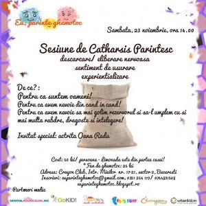 Un atelier special, experiential, in care parintii sunt invitati sa isi exprime emotii precum furie, frustrare, tristete pentru a se elibera si a recapata echilibrul emotional. Parte din exercitii vor fi ghidate de actrita Oana Radu