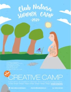 Copiii vor desena și vor picta elementele naturii înconjurătoare folosind tehnica acuarelei, vor explora zilnic tehnici creative multimedia cu cele mai inventive combinații: vor picta poezii, vor ilustra haiku-uri, vor învăța să surprindă expresii ale norilor și vor combina toate acestea într-o poveste ilustrată, vor fi mai mult decât încântat să afle noțiuni de bază pentru realizarea unui film sau a unei fotografii, vor învăța să facă cortul în livadă….și, de ce nu? dacă vor dori să experimenteze o noapte în cort, în condiții de siguranță și confort, vor putea să facă și acest lucru. Vor descoperi plăcerea de a merge în picnic, pe dealul din fața casei, unde va asculta povești despre flora și fauna locală. Poate avem noroc și vom vedea chiar și căprioare. Iar în serile plăcute din August, ne vom strânge cu toții în jurul focului, vom spune povești și poezii sau vom viziona proiecții ale unor scurt-metraje de artă sau de animații premiate la festivaluri care pun accentul pe creativitate.Își vor dezvolta creativitatea prin gătit. Dar nu oricum, ci bazat pe principiile unei alimentații sănătoase, în care copiii vor fi uimiți de varietatea de culori, texturi și arome pe care le vor descoperi sau le vor creea chiar ei. Vor învăța câteva tehnici de gătit foarte simple, vor învăța cum să combine fructele, legumele, leguminoasele, nucile și cerealele pentru a obține un mic dejun sau un prânz delicios și poate când se vor întoarce din tabără, te vor surprinde cu noua lor pasiune pentru gătit!