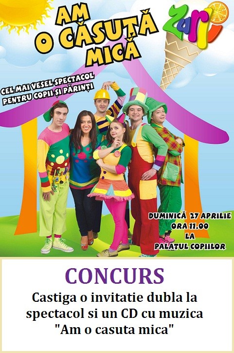 Concurs Zurli si GoKID: Participa si poti castiga o invitatie dubla la spectacolul „Am o casuta mica” si un CD cu muzica de la acest spectacol.