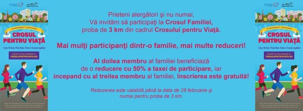 Crosul pentru Viata este organizat de Asociatia Studenti pentru Viata, in parteneriat cu Pegas Triatlon Club, avand drept scop atat promovarea unui stil de viata sanatos, cat si sprijinirea femeilor si familiilor aflate in situatie de criza (sarcina neasteptata, violenta, abuz, impas material, locativ s.a.m.d).