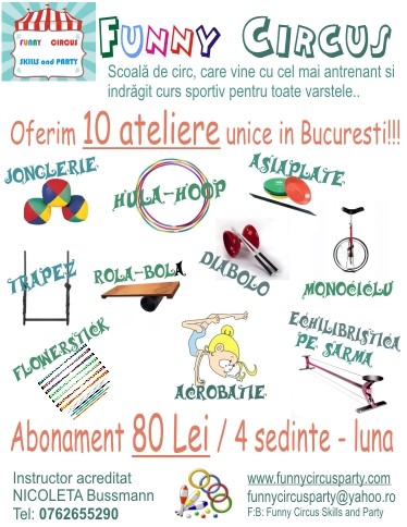 Alaturi de un profesor atestat si pregatit profesional, cu o experienta de peste 10 ani in strainatate, copiii au sansa de a invata sa jongleze, sa mearga pe sarma, sa stapaneasca cercuri de hula hoop, intr-o atmonsfera placuta si relaxanta… Activitatile sunt adaptate in functie de nivelul de varsta al copiilor . Toate aceste activitati au drept scop formarea si dezvoltarea deprinderilor motrice, a dexteritatii, a indemanarii si a simtului echilibrului.