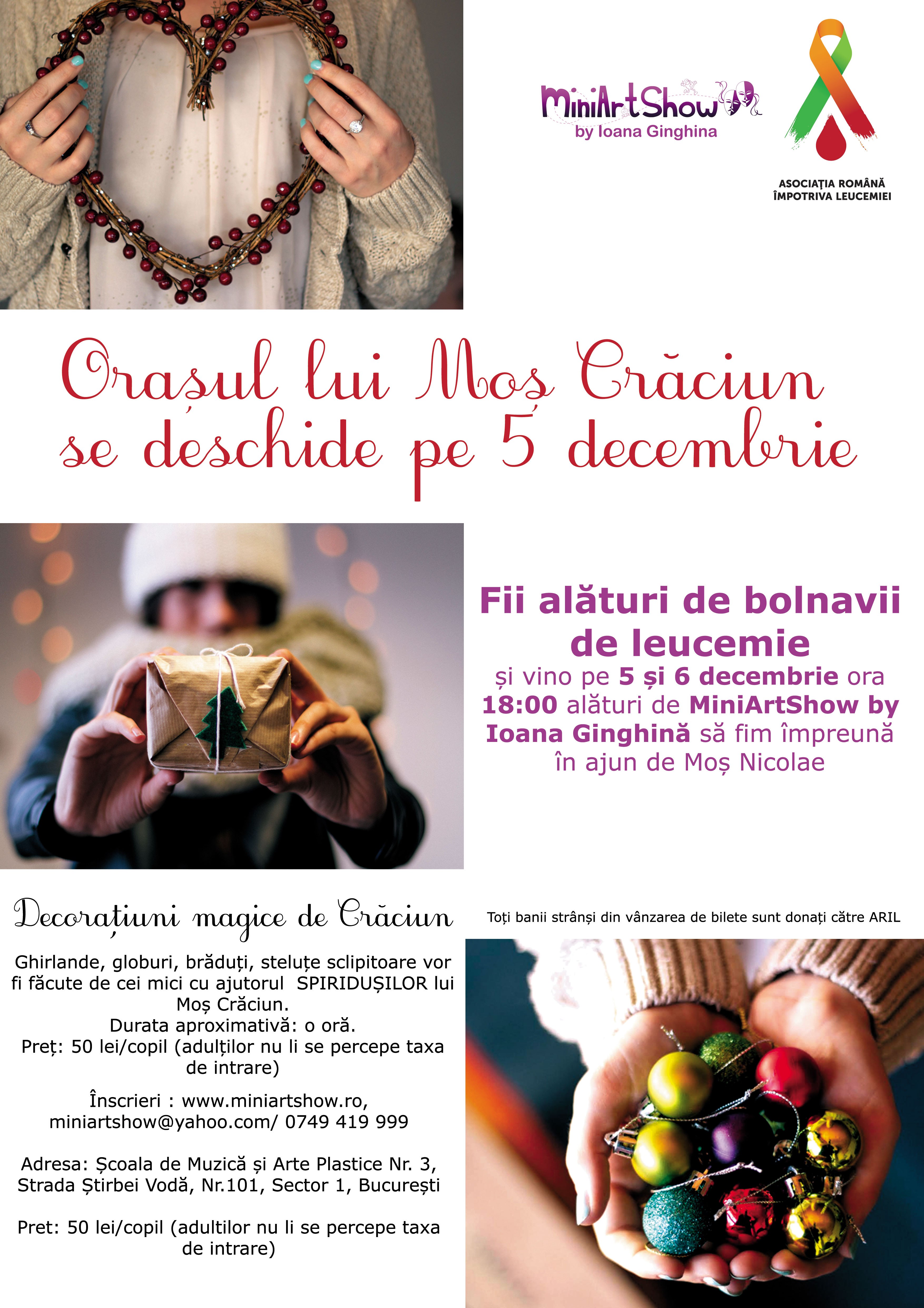 Noi, cei de la MiniArtShow by Ioana Ginghina, ne-am gandit ca in luna cadourilor sa aducem zambete pe fetele celor care sunt mai putin norocosi decat noi, si se afla in suferinta.