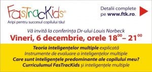 Vineri 6 decembrie, conferința Dr-ului Louis Norbeck ne va explica Teoria inteligențelor multiple explicată si instrumente de evaluare a acesteia