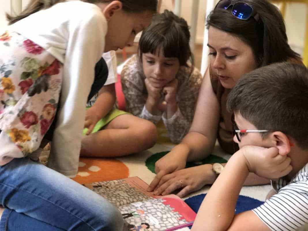 Lucrăm în fiecare limbă cate o oră și jumătate în felul următor: o oră de jocuri și activități și o jumătate de oră – citim o poveste. Cu pauze, evident! 🙂