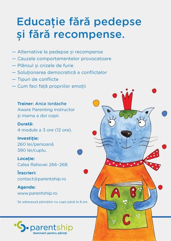 Parentship – Seminarii pentru părinţi (www.parentship.ro) promovează relaţiile bazate pe dragoste neconditionată, respect reciproc şi comunicare autentică între părinţi şi copii.