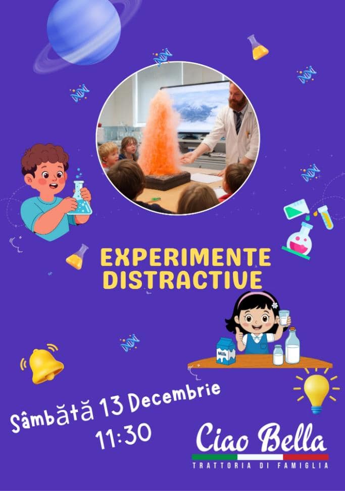 La Restaurant Ciao Bella din Brașov, copiii sunt invitați la o sesiune de experimente științifice super fun — exact combinația perfectă între joacă, magie și „aha moments”.