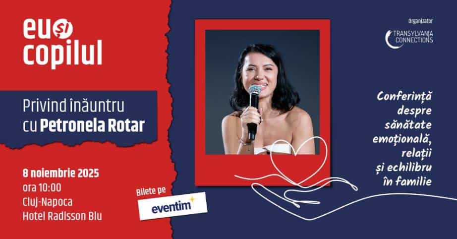 Petronela Rotar revine la Cluj, la invitația comunității Eu și Copilul, într-un eveniment exclusivist dedicat sănătății emoționale și relațiilor dintre părinți și copii. Conferința „Privind înăuntru” aduce în prim-plan discuții autentice despre echilibru, vulnerabilitate și provocările vieții de familie.
