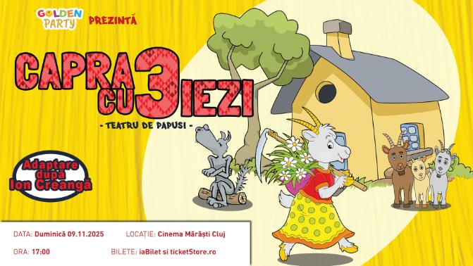 Era odată o capră care avea trei iezi… iar povestea lor revine pe scenă într-o formă plină de farmec, umor și emoție! 🐾 Trupa FUNtasticii Cluj-Napoca aduce la viață una dintre cele mai iubite povești ale copilăriei – „Capra cu trei iezi” de Ion Creangă – într-un spectacol clasic de teatru de păpuși, potrivit pentru întreaga familie.