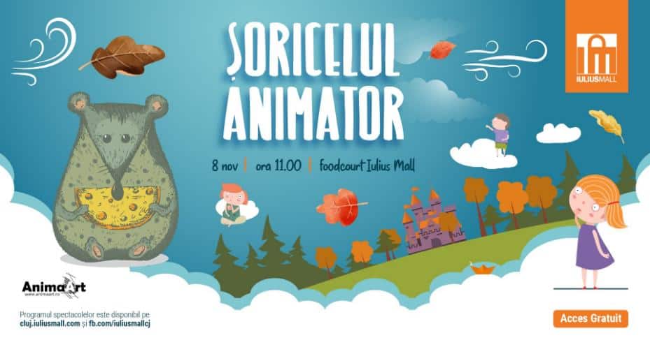Ce se întâmplă când un Șoricel Animator ajunge la Iulius Mall? 🐭✨ Hai să aflăm împreună sâmbătă, 8 noiembrie, de la ora 11:00, într-o aventură plină de umor, energie și culoare, alături de prietenii noștri de la AnimaArt!