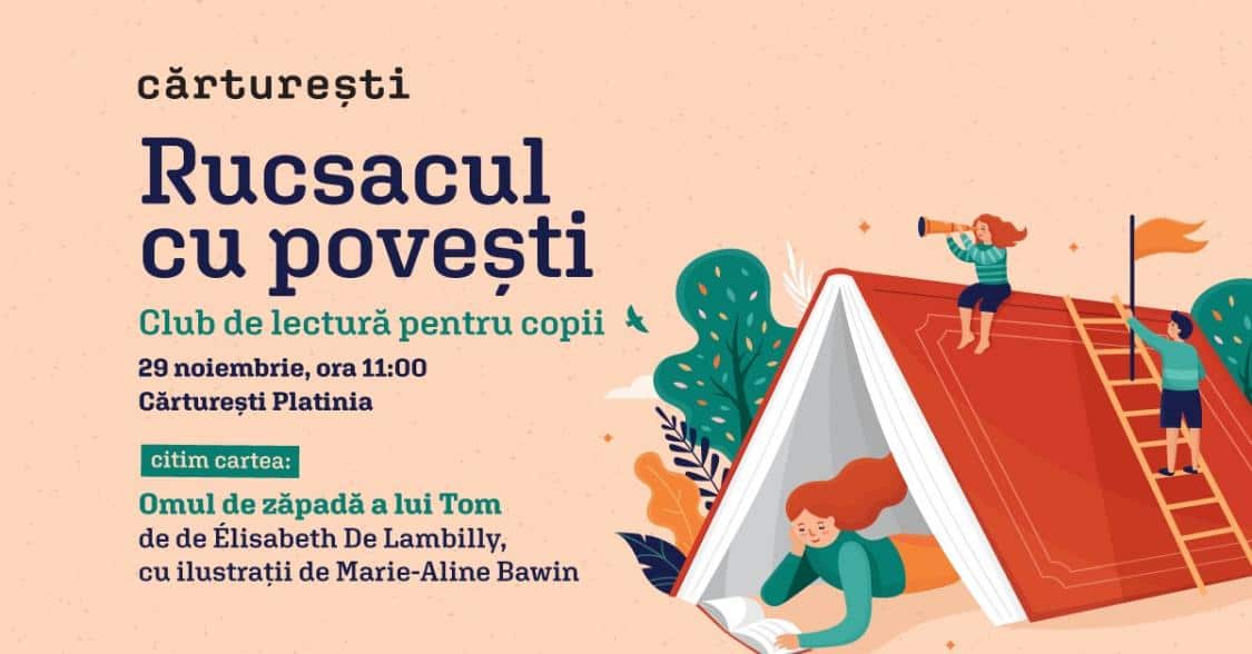 Dragi părinți, vă invităm împreună cu micii voștri cititori în librăria Cărturești Platinia, unde poveștile prind viață la cea de-a patra ediție a clubului de lectură „Rucsacul cu povești” — o ediție specială prin care intrăm în spiritul sărbătorilor de iarnă.