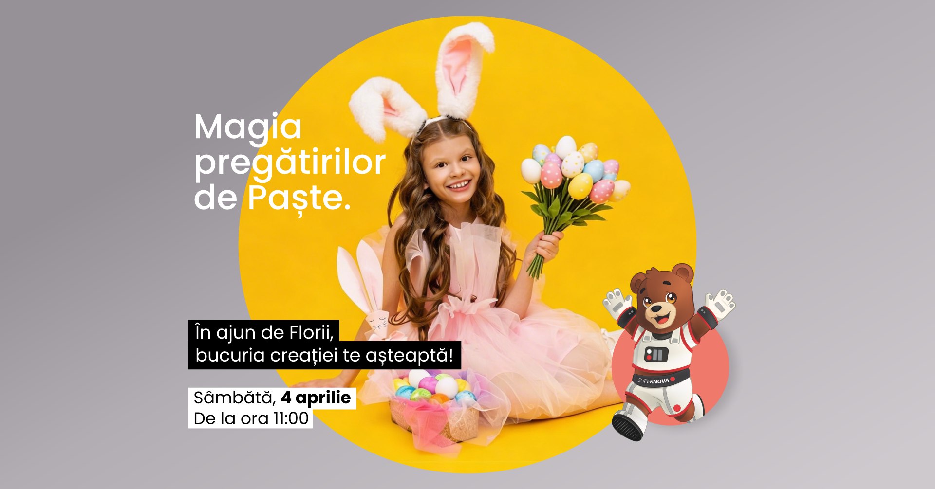 Magia pregătirilor de Paște la Supernova Constanța! Sâmbătă, 4 aprilie, de la ora 11:00, copiii intră într-o lume plină de culoare și creativitate la Supernova Constanța!