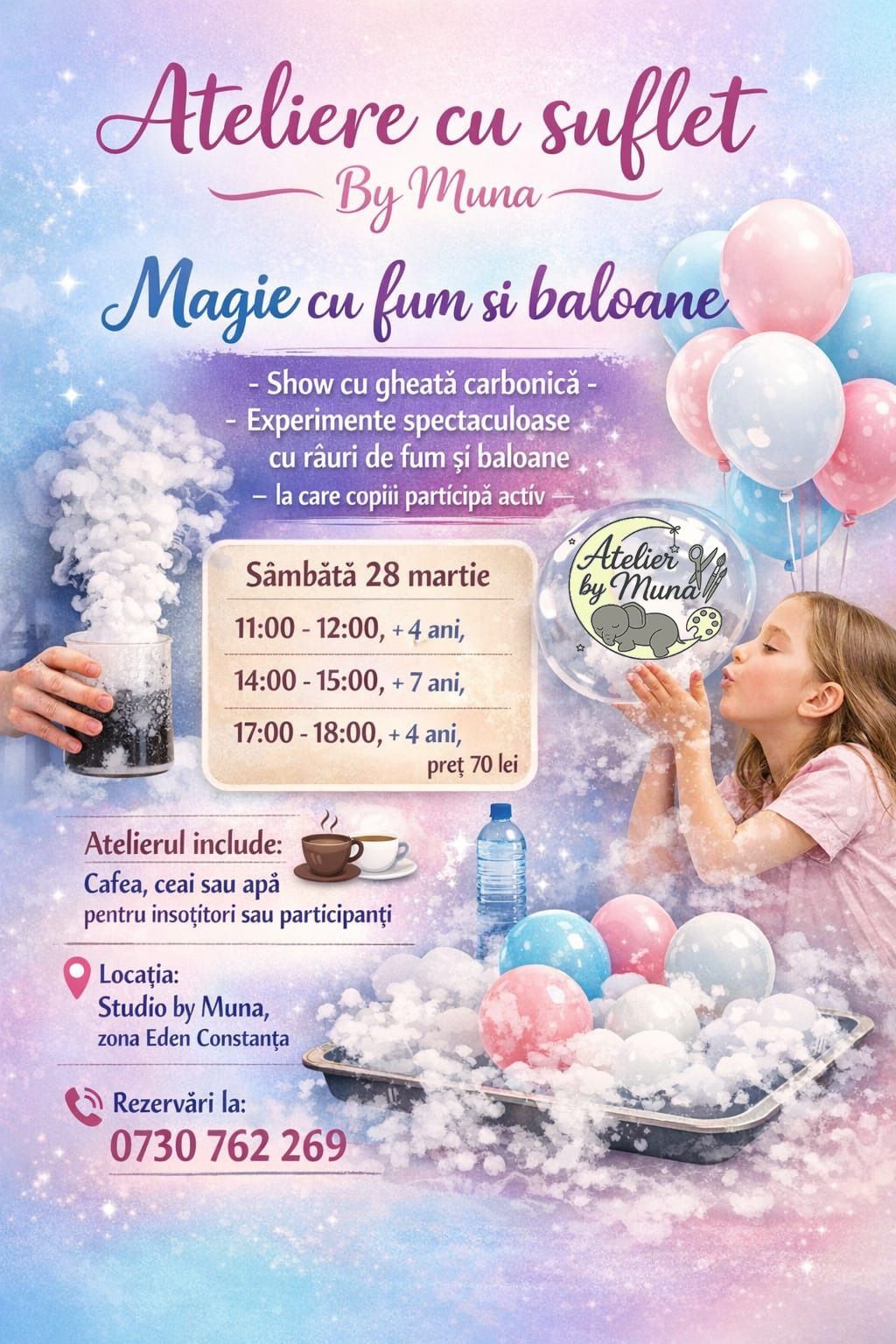 ⏳ Durată: 60 min | 👧 Vârstă: 8–12 ani | 💰 Cost: 70 lei