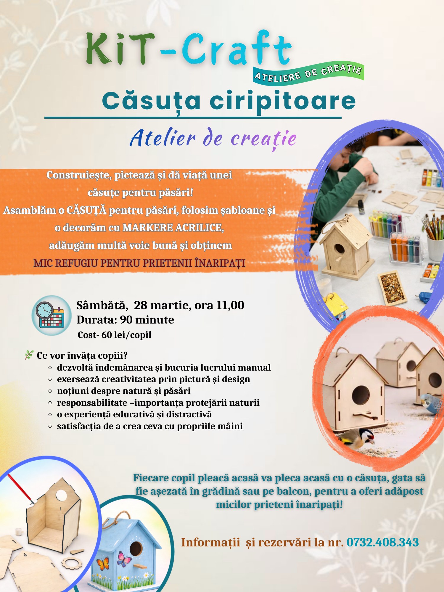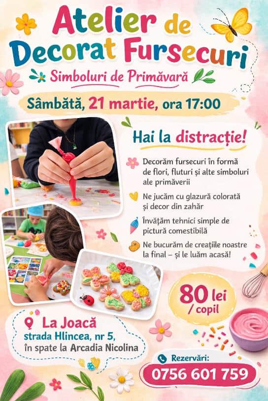 💰 90 lei / copil (include materiale, surpriză dulce și ceai)