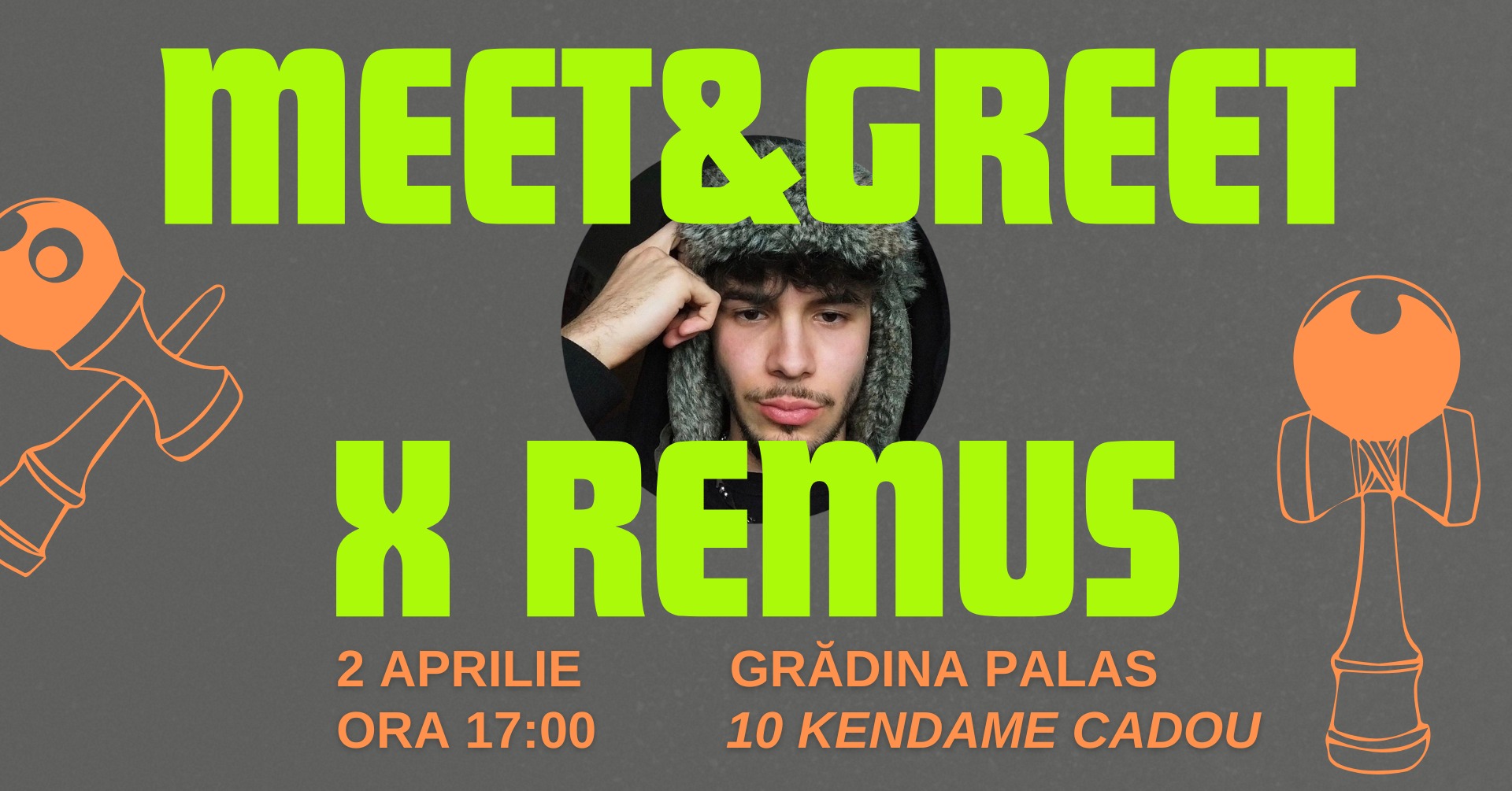 Ne întâlnim la un meet & greet relaxat, unde nu e doar despre privit, ci despre trăit momentul: îl vezi live, îl cunoști, faci poze, schimbi două vorbe și, cine știe, poate pleci și cu un trick nou învățat. Și pentru că știm că o să vrei să încerci și tu, avem și o surpriză: 🎁 10 kendame pentru 10 norocoși din public. Dacă vremea ține cu noi, ne vedem în Grădina Palas.
