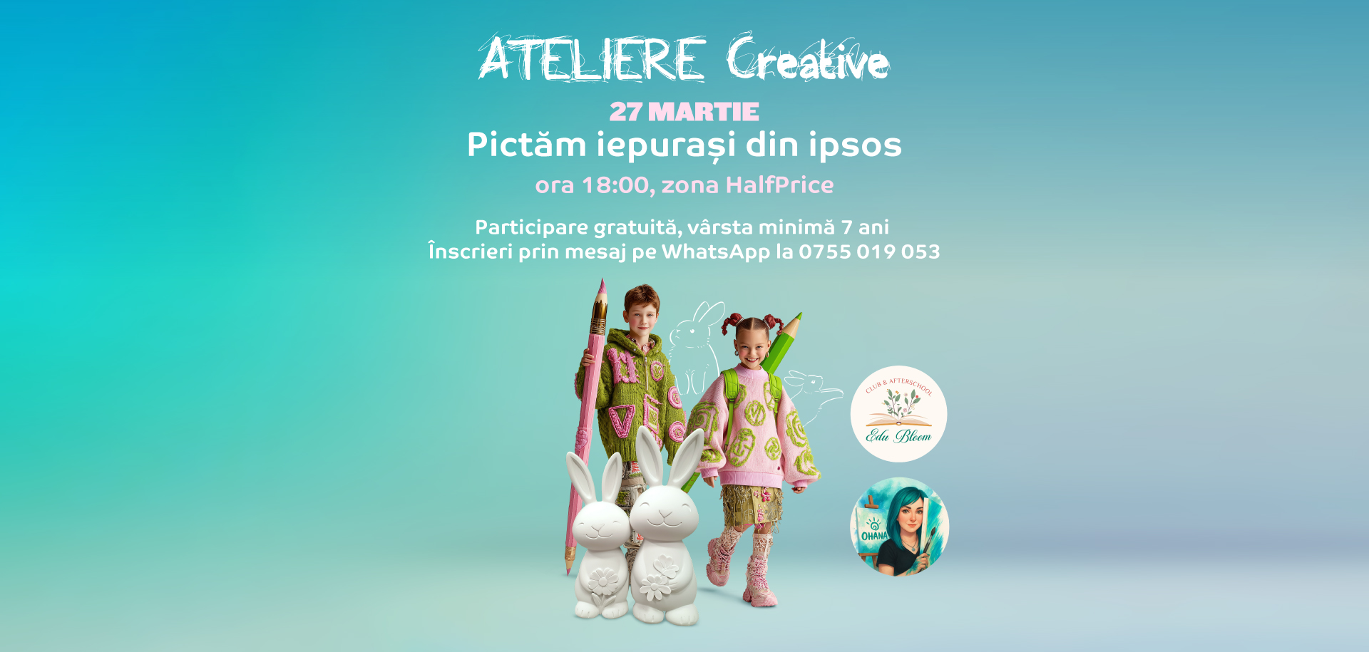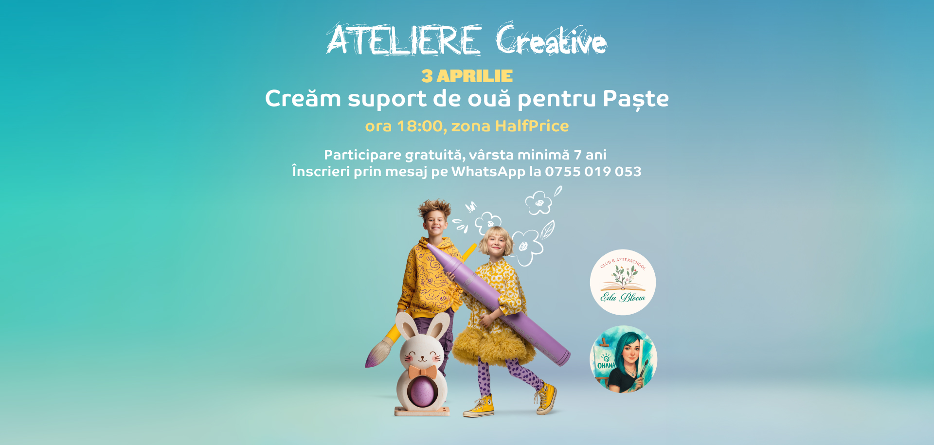🐣 Pregătirile de Paște devin și mai creative la 𝐌𝐚𝐥𝐥 𝐌𝐨𝐥𝐝𝐨𝐯𝐚! Îi invităm pe cei mici la un atelier special, în care vor crea suporturi pentru ouă, pline de culoare și personalitate, perfecte pentru mesele de sărbători, alături de prietenii noștri de la 𝐄𝐝𝐮𝐛𝐥𝐨𝐨𝐦 𝐂𝐥𝐮𝐛 & 𝐀𝐟𝐭𝐞𝐫𝐬𝐜𝐡𝐨𝐨𝐥 și 𝐎𝐇𝐀𝐍𝐀 – 𝐀𝐭𝐞𝐥𝐢𝐞𝐫𝐞 𝐜𝐫𝐞𝐚𝐭𝐢𝐯𝐞.