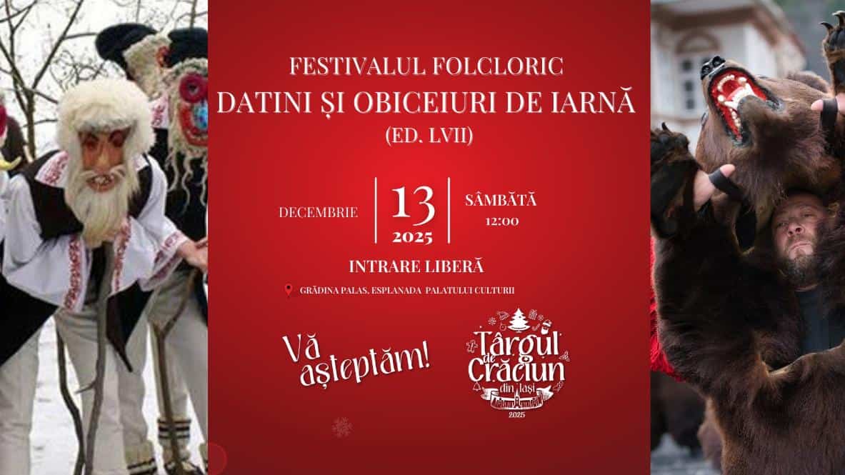 Iașul se umple din nou de culoare, ritm și tradiție odată cu Festivalul Folcloric Datini și Obiceiuri de Iarnă, ajuns la venerabila ediție LVII! În mijlocul Târgului de Crăciun de la Palas, tradițiile strămoșești prind viață chiar sub ochii noștri, cu toată energia lor jucăușă și autentică.