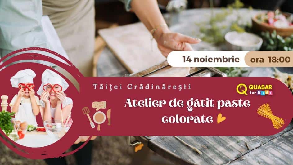 Quasar for Kids vă invită la un atelier creativ și delicios, dedicat întregii familii! Atelierul de Paste Colorate transformă o după-amiază obișnuită într-o experiență plină de joacă, culoare și descoperiri culinare. Copiii și părinții vor lucra împreună pentru a modela și decora paste în forme irezistibile, perfecte pentru micii artiști pofticioși. 🍝✨