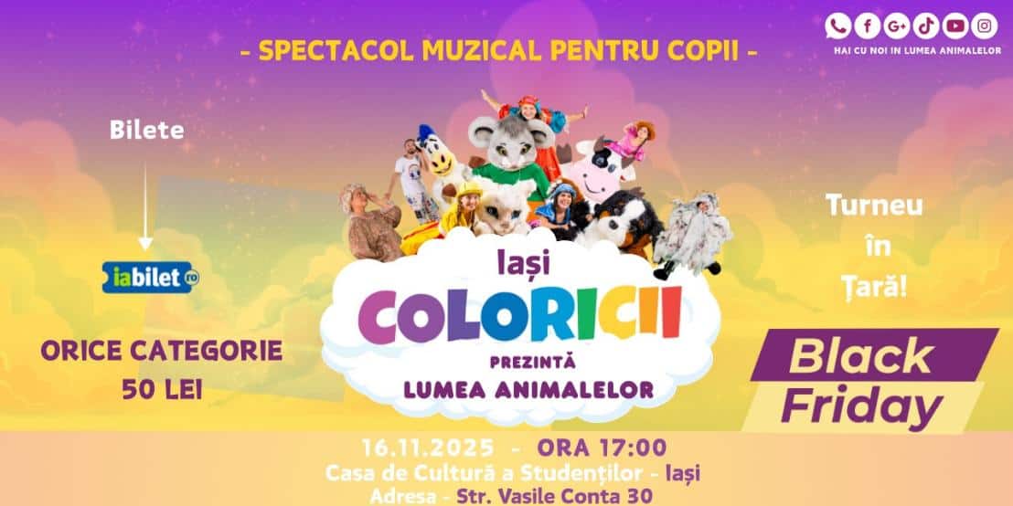 Coloricii pornesc în turneu cu o poveste complet nouă – „Coloricii și Lumea Animalelor”! Un spectacol muzical plin de energie, emoție și umor, în care cei mici descoperă frumusețea prieteniei și importanța grijii față de animăluțe. 🐾