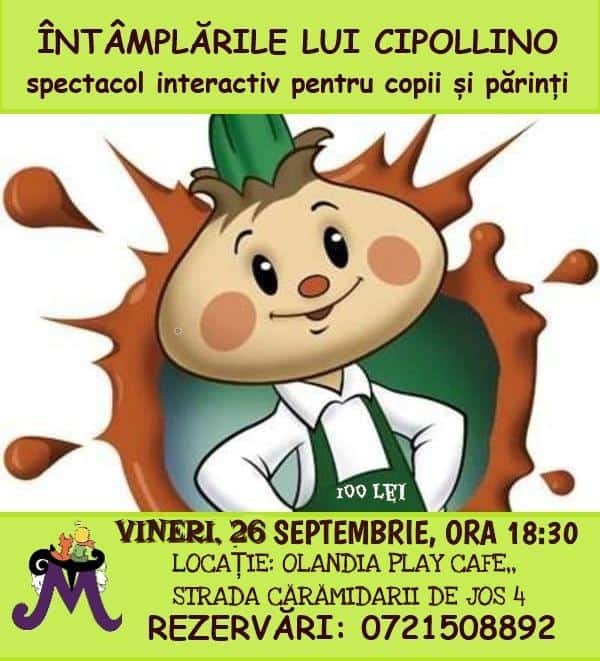 Vineri, 26 septembrie, de la ora 18:30, cei mici sunt așteptați la un spectacol-atelier plin de voie bună: „Întâmplările lui Cipollino”. Povestea interactivă îi poartă pe copii prin aventurile curajosului Cipollino, care descoperă prietenia, solidaritatea și bucuria jocului.
