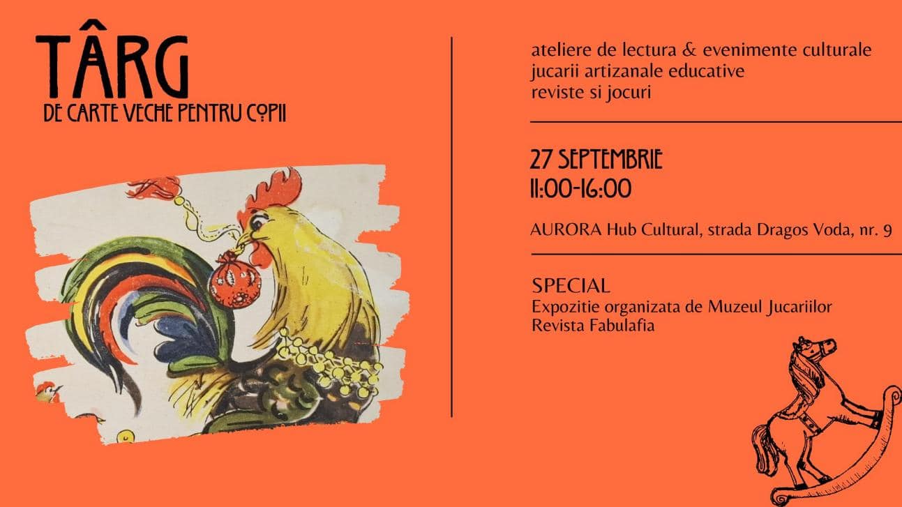 Sâmbătă, 27 septembrie, între 11:00 și 16:00, Aurora Afterschool & Hub Cultural găzduiește Târgul de carte veche pentru copii, un eveniment care aduce în prim-plan universul editorial de dinainte de anii ’90. Micii cititori și familiile lor sunt invitați să descopere volume rare și ilustrații autentice, în două secțiuni speciale: expoziție și vânzare. Evenimentul urmărește:
