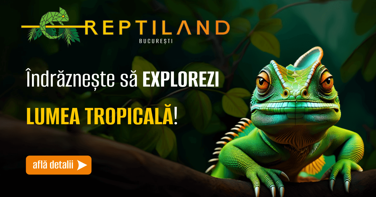 👉 Tur ghidat prin jungla amazoniană. Descoperi peste 46 de specii de reptile vii din toate colțurile lumii: iguane roșii și verzi, șopârle Gecko, dragoni de apă, caimani, pitoni (inclusiv cel mai mare piton reticulat expus în România) și multe altele.