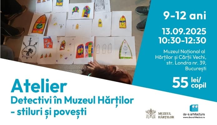 Asociația De-a Arhitectura, în parteneriat cu Muzeul Hărților, îi invită pe copiii de 9–12 ani la atelierul „Detectivi în Muzeul Hărților – Stiluri și povești”. Cei mici vor explora clădirea de patrimoniu clasa B ce găzduiește muzeul, descoperind istoria și transformările arhitecturale de-a lungul timpului, cu ajutorul schițelor, fotografiilor și hărților.