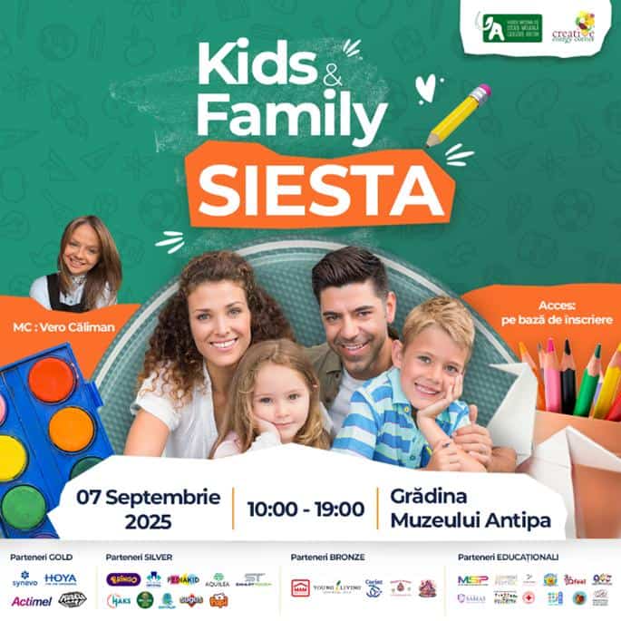 Pe 7 septembrie, Grădina Muzeului Antipa se transformă într-un loc de joacă, relaxare și inspirație pentru întreaga familie! Kids & Family SIESTA revine cu o nouă ediție și aduce împreună: ateliere creative și educative, workshop-uri interactive, jocuri și spectacole de teatru pentru copii, activități culturale menite să încheie vacanța de vară cu bucurie și imaginație.
