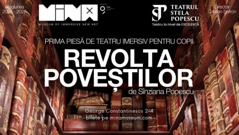 MINA Museum și Teatrul „Stela Popescu” te invită la „Revolta poveștilor”, primul spectacol de teatru imersiv pentru copii din România. O aventură magică, unde teatrul se împletește cu arta digitală pentru a aduce la viață personajele din basmele copilăriei.