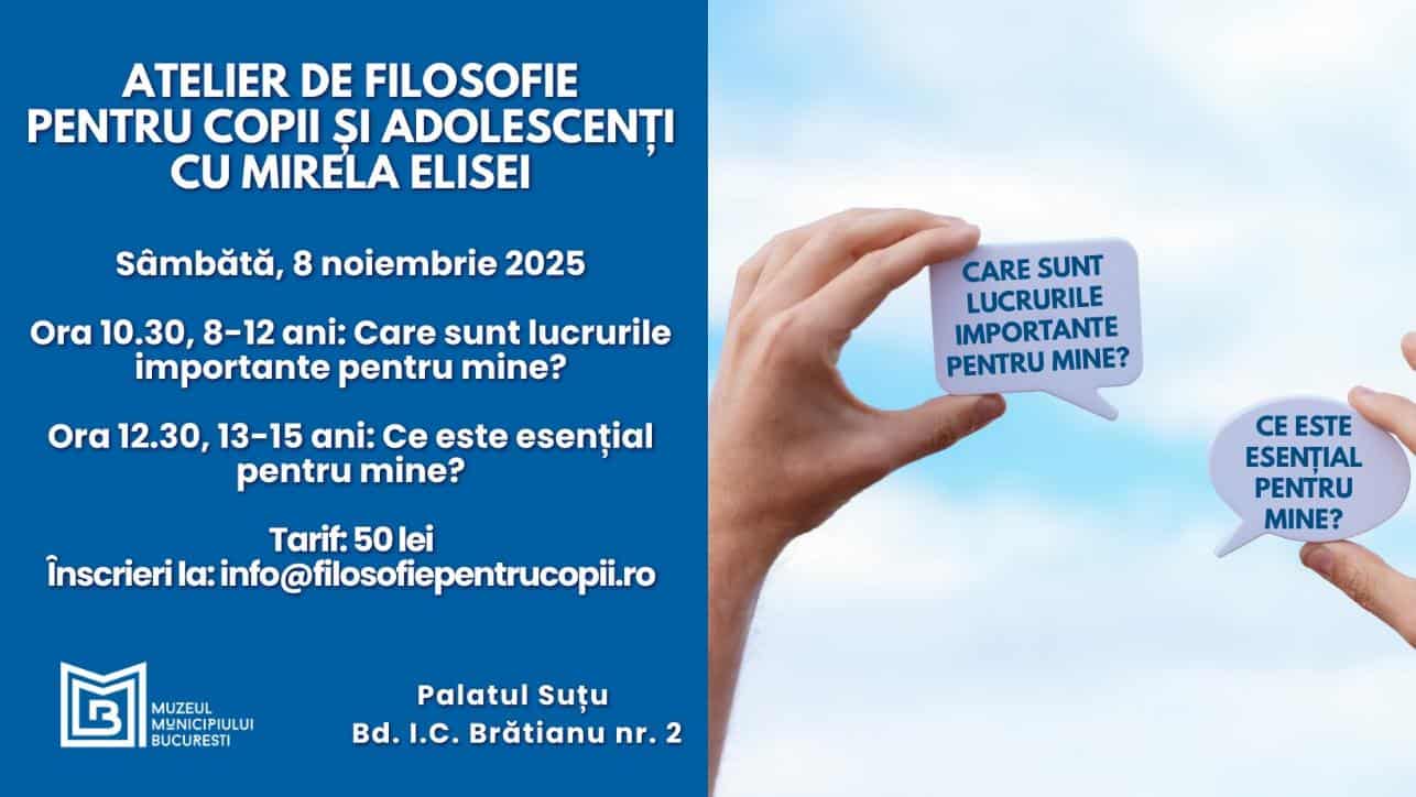 Atelierul de filosofie pentru copii și adolescenți, susținut de Mirela Elisei, îi încurajează pe tineri să gândească critic, să-și exprime ideile liber și să învețe prin dialog folosind metoda P4C – Philosophy for Children.