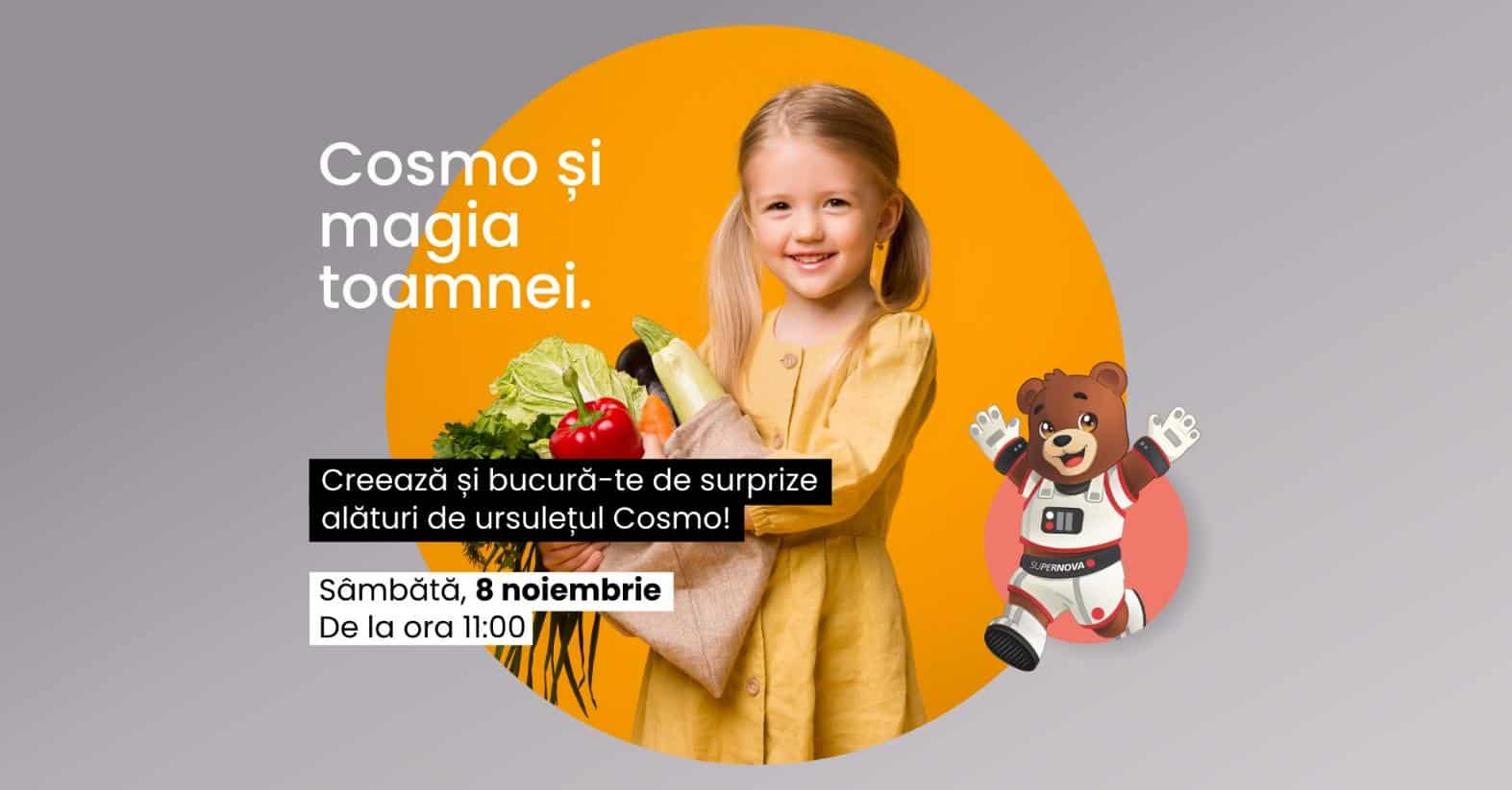 🍂 Toamna devine mai veselă și mai colorată alături de Cosmo, ursulețul astronaut! Sâmbătă, 8 noiembrie, de la ora 11:00, Supernova Lujerului se transformă într-un tărâm plin de joacă, culoare și imaginație, unde copiii vor descoperi magia toamnei prin ateliere creative și întâlniri pline de bucurie.
