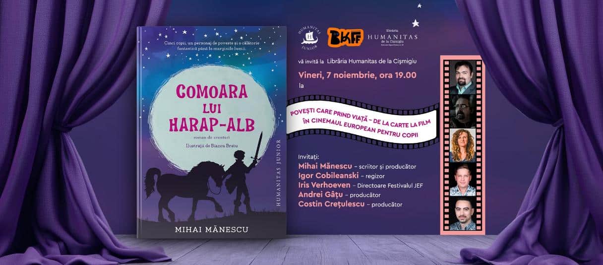 Humanitas Junior și Bucharest Kids Film Festival vă invită vineri, 7 noiembrie, de la ora 19:00, la Librăria Humanitas de la Cișmigiu, la o discuție captivantă despre povești care prind viață – de la carte la film în cinemaul european pentru copii. Evenimentul reunește scriitori, regizori și producători într-un dialog despre felul în care literatura inspiră cinematografia contemporană dedicată copiilor. Tot în cadrul întâlnirii va avea loc și Festivitatea de premiere a BKFF 2025, care marchează finalul celei de-a patra ediții a festivalului de film pentru copii.