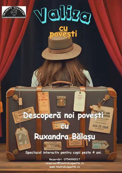 Plin de surprize și interactiv, „Valiza cu povești” este un spectacol magic care se naște de fiecare dată altfel, în funcție de imaginația copiilor din sală. Actrița Ruxandra Bălașu o interpretează pe Fany, un personaj călător care locuiește într-o valiză plină de povești. Fiecare spectacol devine o aventură unică, pentru că povestea este construită pe loc, pornind de la obiectele misterioase găsite în valiză — și de la ideile copiilor spectatori. ✨