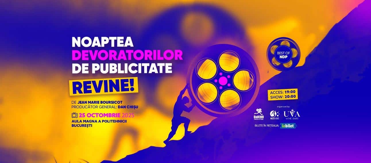 După o pauză de peste trei ani, Noaptea Devoratorilor de Publicitate se întoarce cu forțe proaspete în această toamnă! Evenimentul emblematic pentru pasionații de publicitate revine sâmbătă, 25 octombrie 2025, la Aula Magna a Universității Politehnica din București, într-o ediție așteptată cu entuziasm de comunitatea creativă.