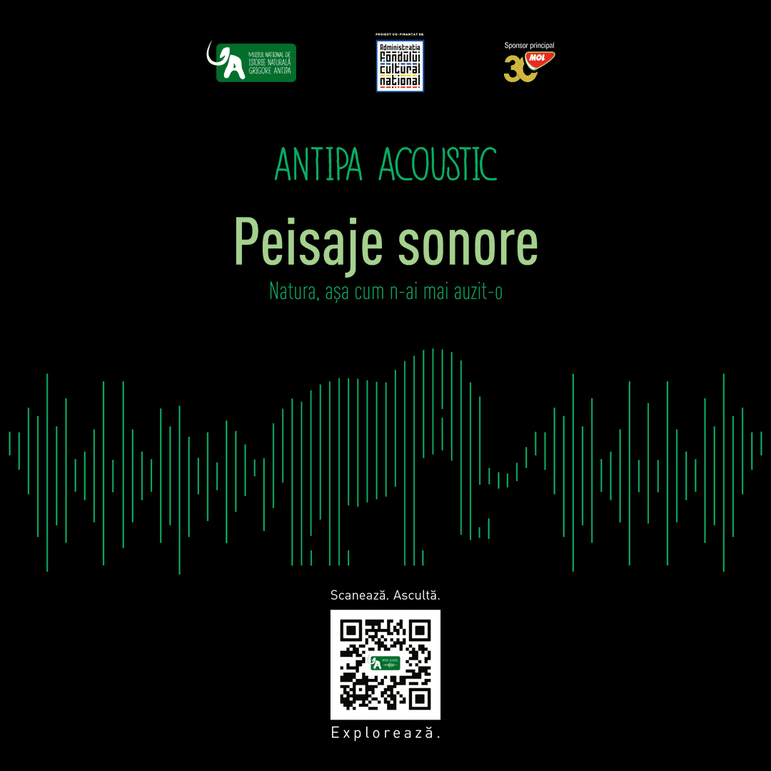 Începând cu luna octombrie 2025, Muzeul Antipa își invită vizitatorii să descopere natura într-un mod cu totul nou, prin proiectul cultural inovator „Antipa Acoustic” – o experiență sonoră unică ce transformă expoziția permanentă într-o călătorie multisenzorială. Fiecare dioramă prinde viață printr-un peisaj sonor dedicat, creat cu ajutorul unui sistem audio performant și al unei aplicații web interactive. Vizitatorii pot asculta sunetele autentice ale naturii: cântecul păsărilor, chemările mamiferelor, foșnetul frunzelor, trosnetul gheții, vuietul mării sau pașii ursului în pădure.