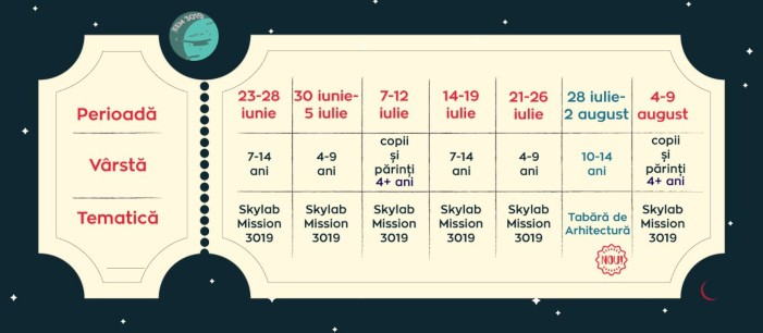 Vezi aici PREZENTAREA detaliată a taberei Skylab Mission 3019 pentru copii.