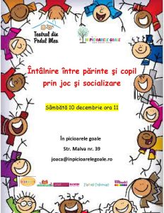 Teatrul din Podul Meu va invita la o intâlnire între părinţi şi copii prin joc şi socializare. Părinţii şi copii se vor juca împreună şi vor face o poveste atât a fiecaruia cât şi a grupului.