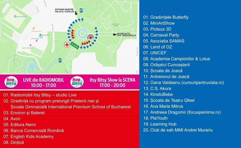 Itsy, Bitsy, Super Zapa si toti realizatorii radioului ii invita pe copii la Radiomobilul Itsy Bitsy, de la ora 10:00 la 17:00. Cei mici sunt asteptati sa-si povesteasca cele mai tari amintiri de vacanta, in direct, de la microfonul din studioul pe roti.