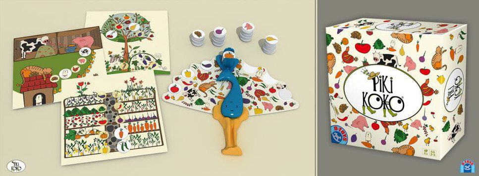 În jocul Piki Koko la Țară, păunul îmbogățește prin joacă cunoștințele celor mici prin exerciții distractive de asociere. Jucătorii primesc planșe cu ilustrații drăguțe iar păunul ”distribuie” jetoane datorită mecanismului special, printr-o mișcare delicată. Cei mici așteaptă încântați în fiecare tur oare ce jetoane vor fi dezvăluite. Astfel învață să identifice diferitele animăluțe, fructe și legume și să le asocieze cu imaginile de pe planșe.