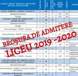 Broșura de admitere la liceu și școala profesională 2019 cuprinde informații esențiale pentru elevii de clasa a VIII-a: câte clase de informatică, științe ale naturii, filologie, etc organizează fiecare liceu în anul școlar 2019-2020, care este numărul de locuri pe care vor concura la fiecare liceu în parte, care a fost ultima medie de intrare anul trecut la fiecare clasă, pe fiecare filieră, care sunt școlile profesionale duale unde se pot înscrie.